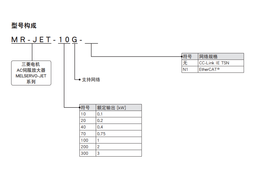| MR-JET系列 | 0.1KW | HG-KNS13J | MR-JET-10G-N1 | CAT6A-RJ45-_M | MR-J3ENCBL_M-A1-L | MR-PWS1CBL_M-A1-L | |