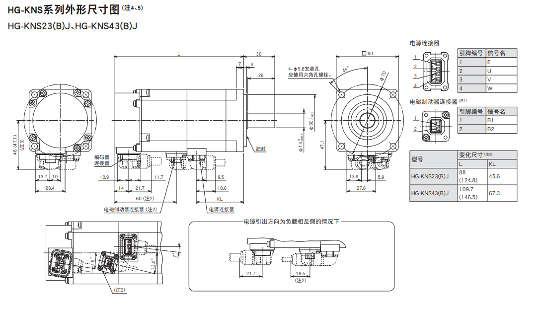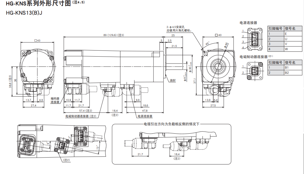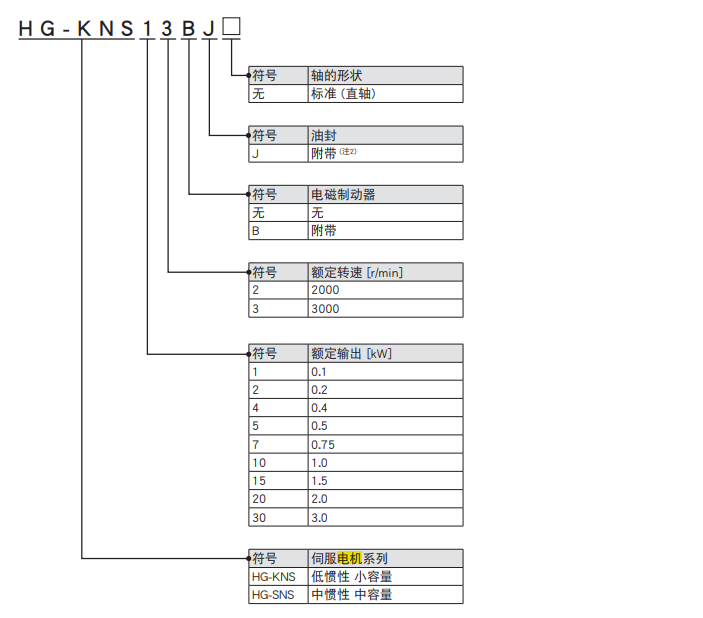 | 旋轉型伺服電機型號HG-KNS | 13J | 23J | 43J | 73J | |