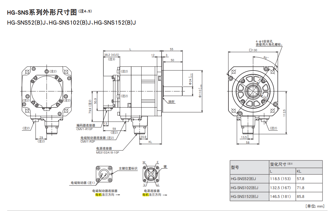 | HG-SNS系列(中慣性、中容量) 規格 | ||||||