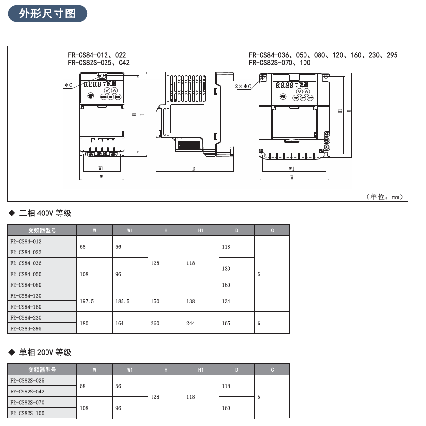 | FR-CS84-012 | 0.4 | 0.9 | 0.2/1.0 | 三相380~480V | 1.5 | 0.6 |