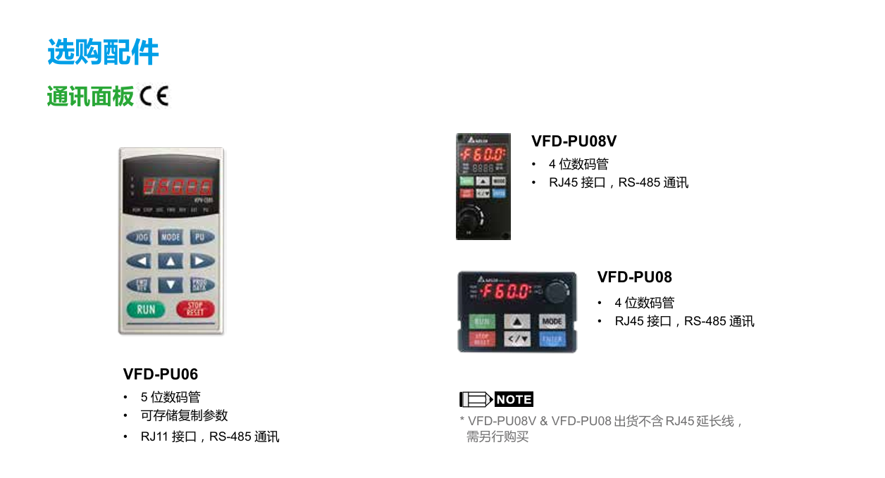 2. 多樣化的速度調節及控制運行方式:數字操作面版,外部端子,Modbus 通訊