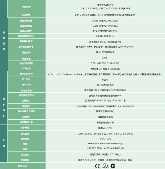 | VFD-007V | 1.9 | 5 | 1.0 | 6.25 | 1.5 | 三相對應輸入電壓 | 0.00-600.00Hz | 6.4 | 三相,200-240V,50/60Hz | ±10%(180~264 V) | ±5%(47~63 Hz) | 自然冷風 | 2.7 | |