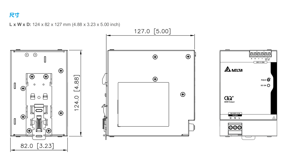 • 內置 DC OK 繼電器干接點及 DC OK LED 指示燈