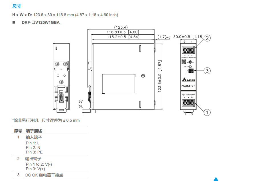 | 輸出 | DRF-12V120W1GBA | DRF-12V240W1GBA | DRF-24V120W1GBA | DRF-24V240W1GBA | DRF-24V480W1GBA | DRF-48V120W1GBA | DRF-48V240W1GBA | DRF-48V480W1GBA | |