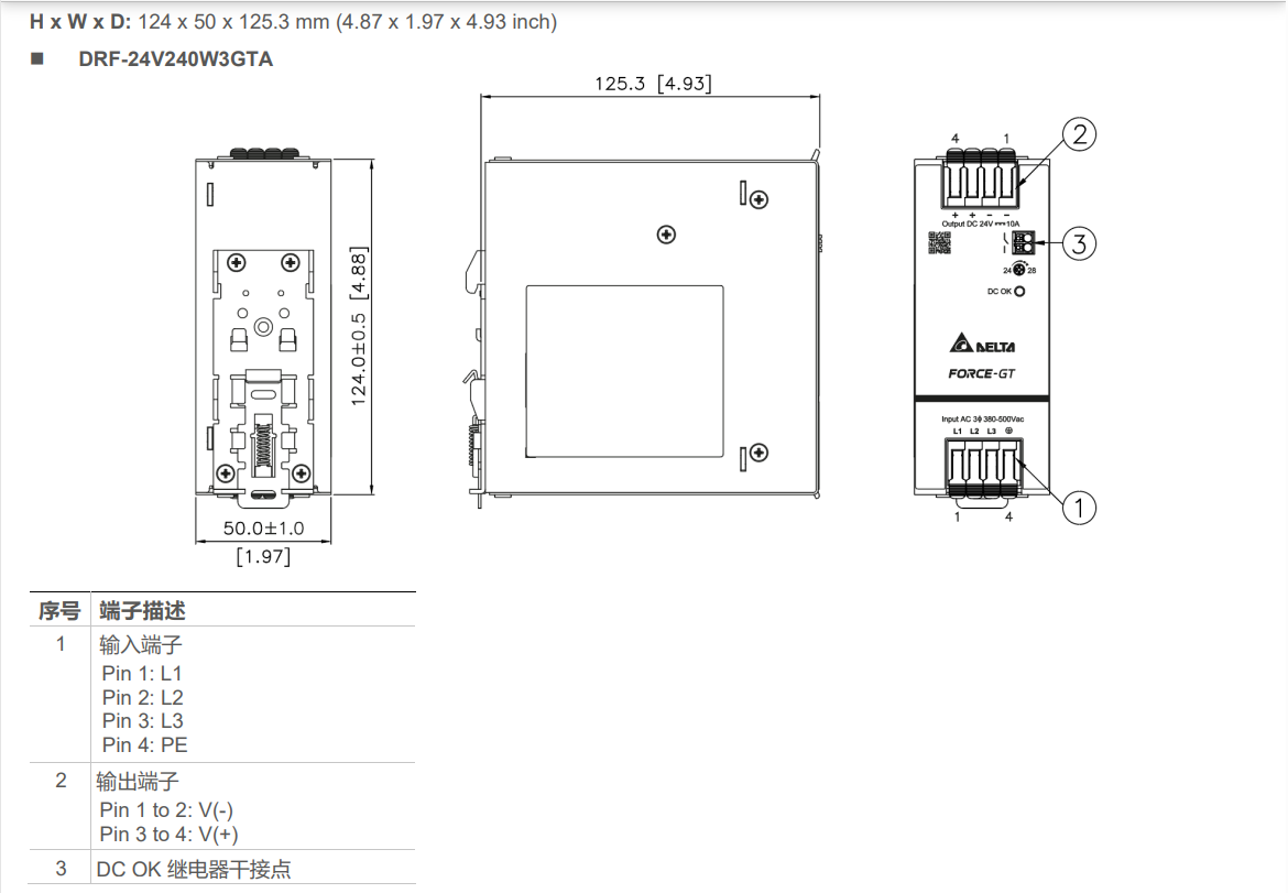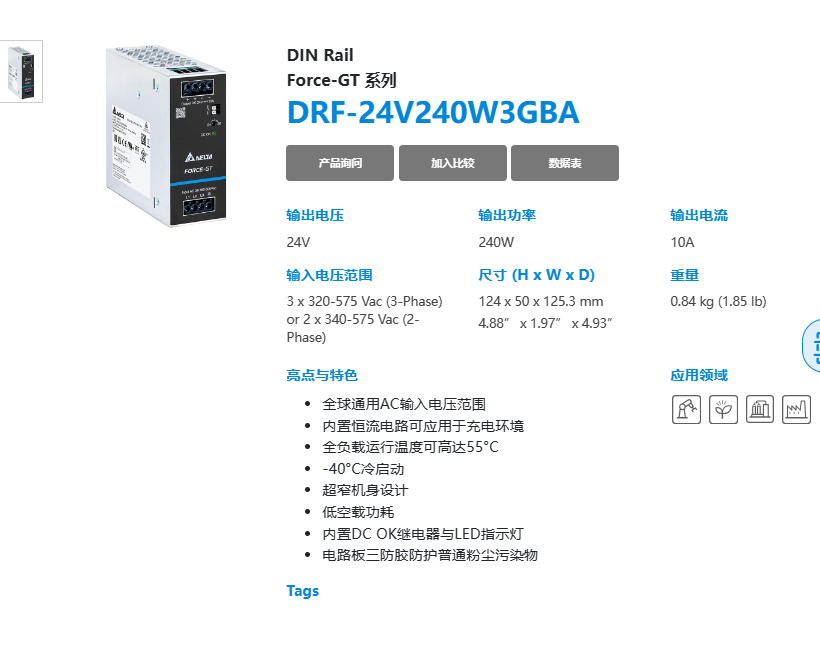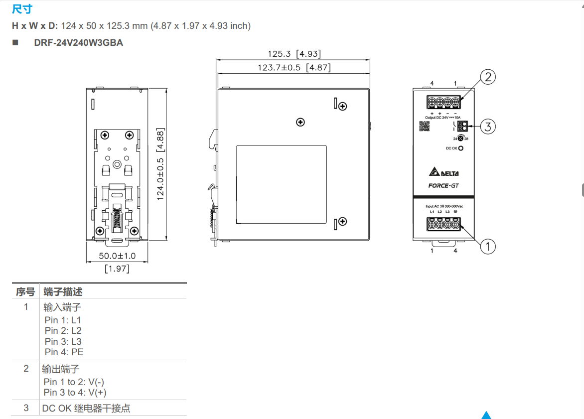 | 輸出 | DRF-24V120W3GBA | DRF-24V240W3GBA | DRF-24V480W3GBA | DRF-24V960W3GBA | |