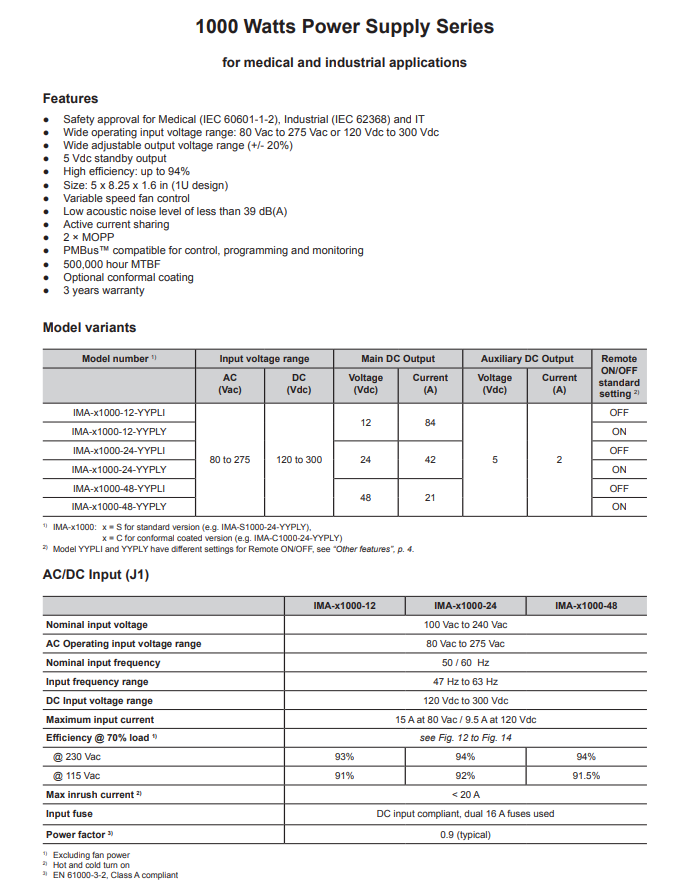 - Wide operating input voltage range: 80 Vac to 275 Vac or 120 Vdc to 300 Vdc