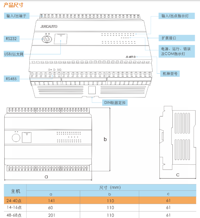 YSC-40T4-C-D/A 40點 NPN 0.3A 24(4) 16(4) 200khz  4 RS232/RS 485/USB /