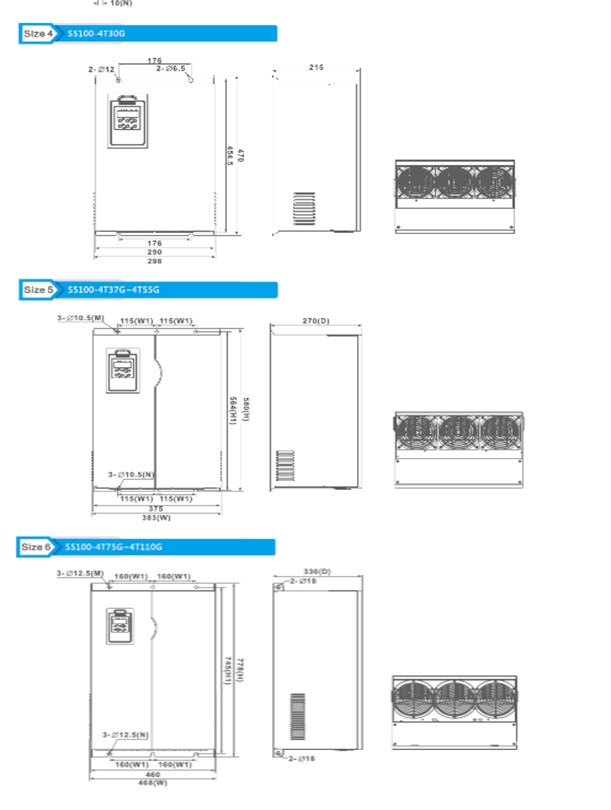 | 型號(hào)(S5100-4T***G) | 5.5 | 7.5 | 11 | 15 | 18.5 | 22 | 30 | 37 | 45 | 55 | 75 | 90 | 110 | |