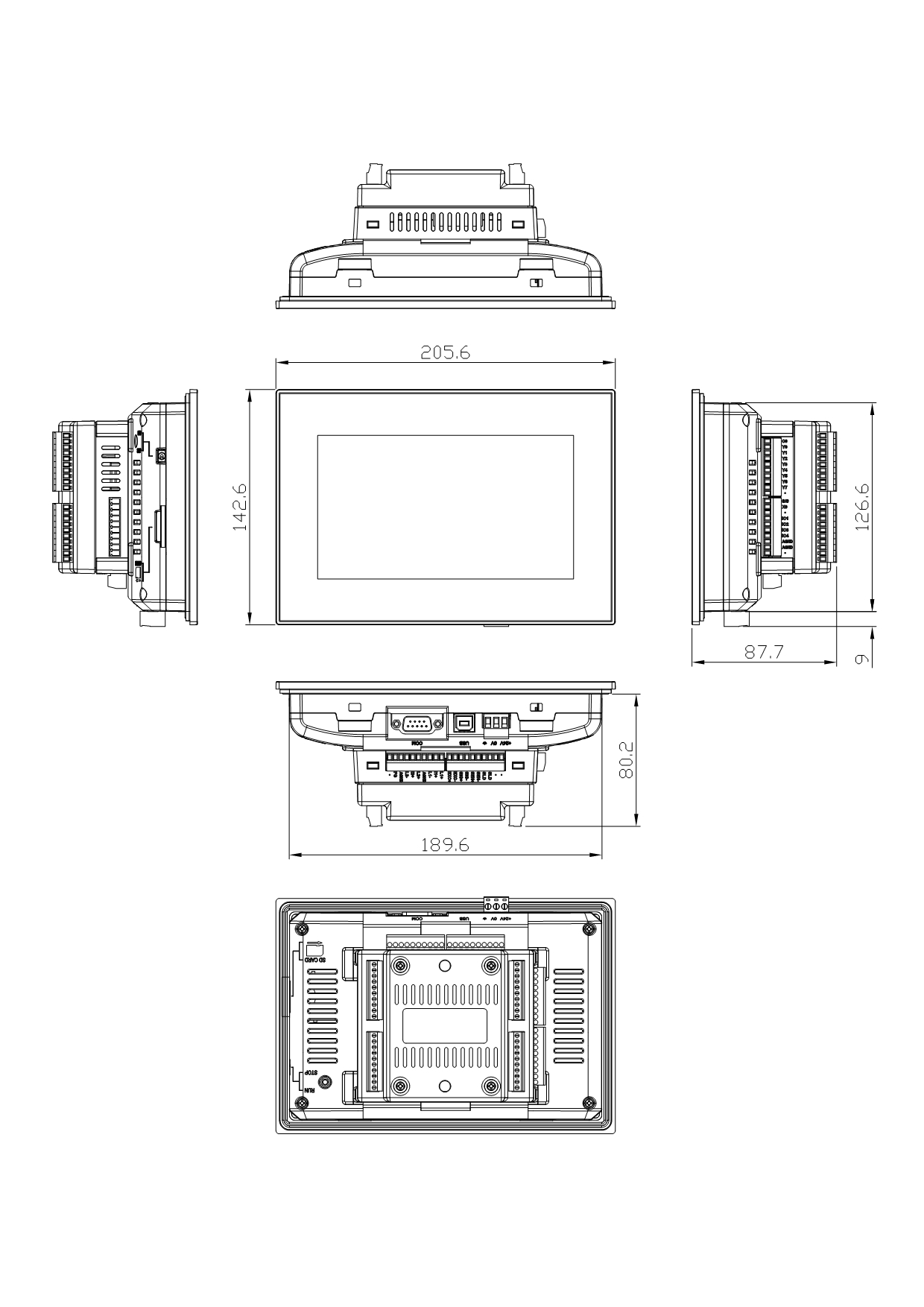 | 觸控面板 | 四線電阻式,按壓壽命超過10,000,000次 | ||||