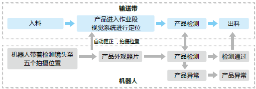 應(yīng)用臺(tái)達(dá)水平關(guān)節(jié)機(jī)器人 (SCARA)帶著 CCD 檢測(cè)鏡頭檢查產(chǎn)品五個(gè)面,并自動(dòng)更正點(diǎn)位