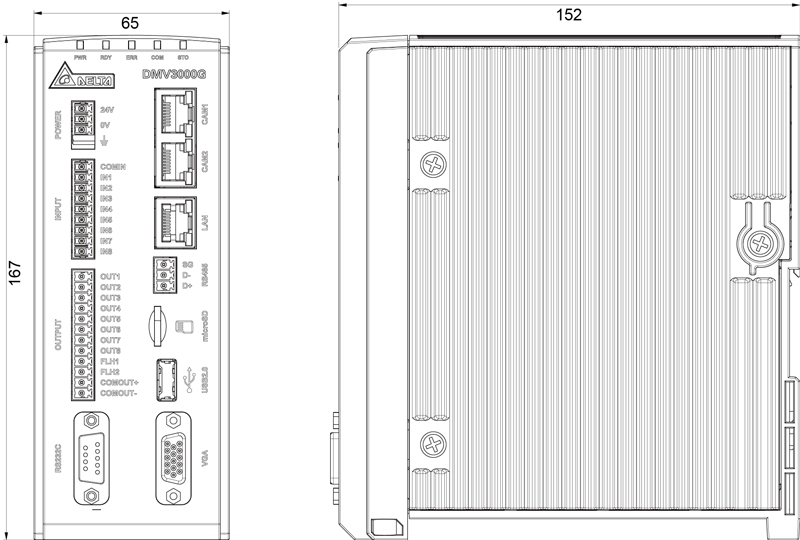- I/O 通訊接口:可規劃輸入腳 (9 pin);可規劃輸出腳 (12 pin)