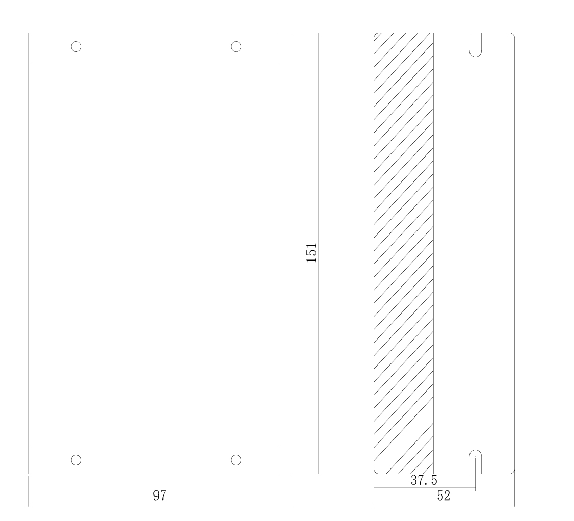 | 安裝說明 | 驅動器的外形尺寸為:151×97×52mm,安裝孔距為142mm。安裝時,應使其緊貼在金屬機柜上以利于散熱。 |