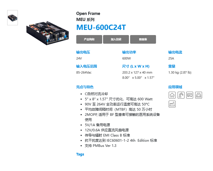 Open Frame MEU 系列 MEU-600C24T