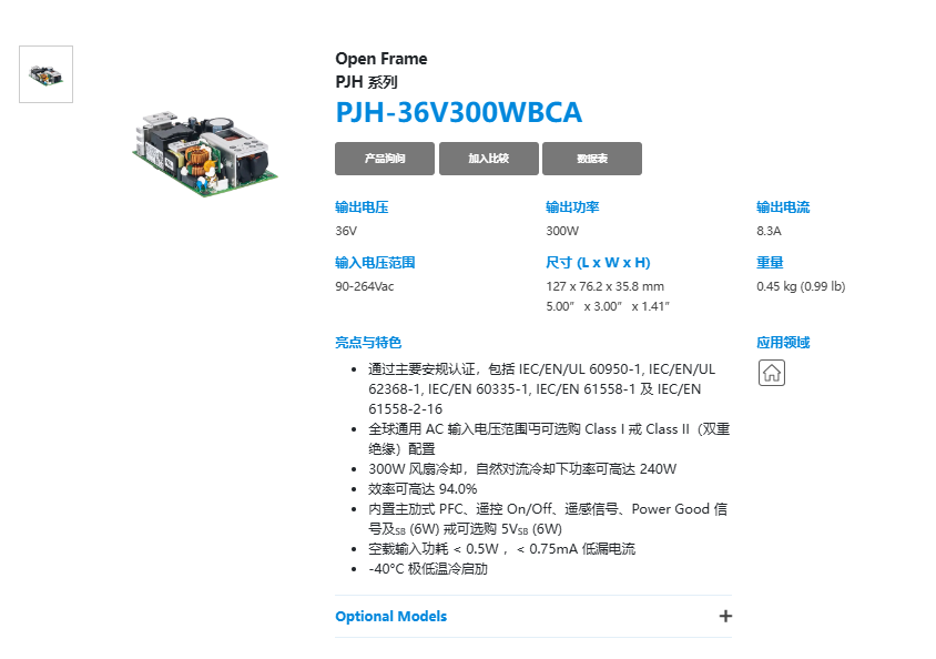| 輸出 | PJH-24V300WBBA | PJH-24V300WBCA | PJH-36V300WBBA | PJH-36V300WBCA | |