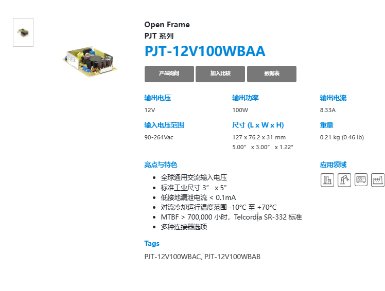 Open Frame PJT 系列 PJT-12V100WBAA