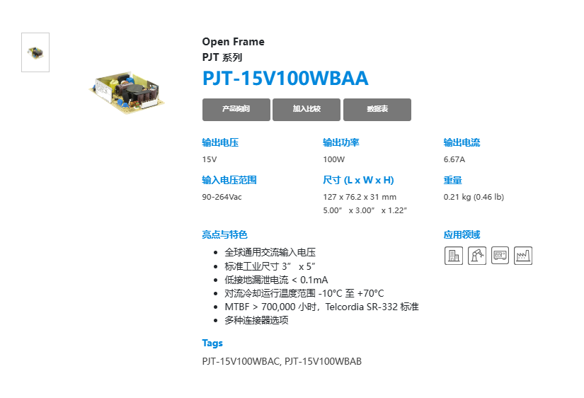 - MTBF > 700,000 小時,Telcordia SR-332 標準
