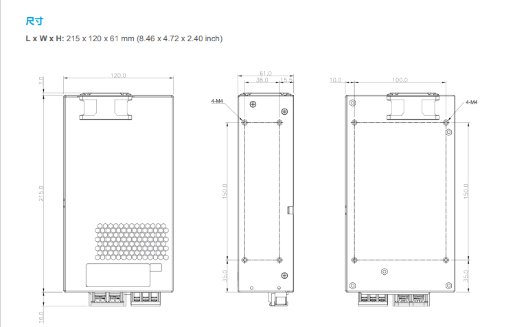 | 尺寸(H × W × D) | mm | 77 × 51 × 28 | 178 × 97 × 38 | 215 × 120 × 61 |