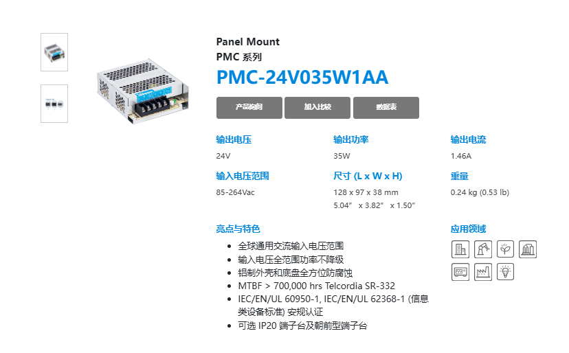 功率因素 115VAC 符合 EN 61000-3-2 > 0.99 > 0.98