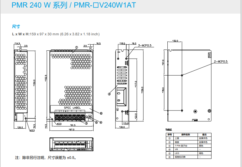 輸出 PMR-12V320W1AT PMR-24V320W1A PMR-36V320W1AT PMR-48V320W1AT