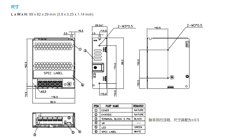 尺寸(L × W × H) mm 99 × 82 × 29 99 × 82 × 29 99 × 97 × 30 129 × 97 × 30 159 × 97 × 30 159 × 97 × 30 159 × 97 × 30 215 × 115 × 30