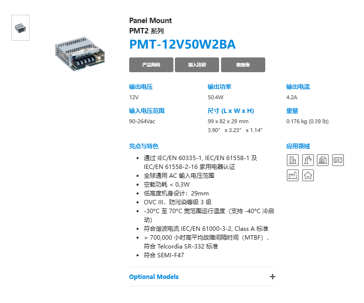 | 輸出 | PMT-12V35W2BA□ | PMT-12V50W2BA□ | PMT-12V75W2BA□ | PMT-12V100W2BA□ | PMT-12V150W2BA□ | PMT-12V150W2CA□ | PMT-12V200W2B□□ | PMT-12V350W2B□□ | |