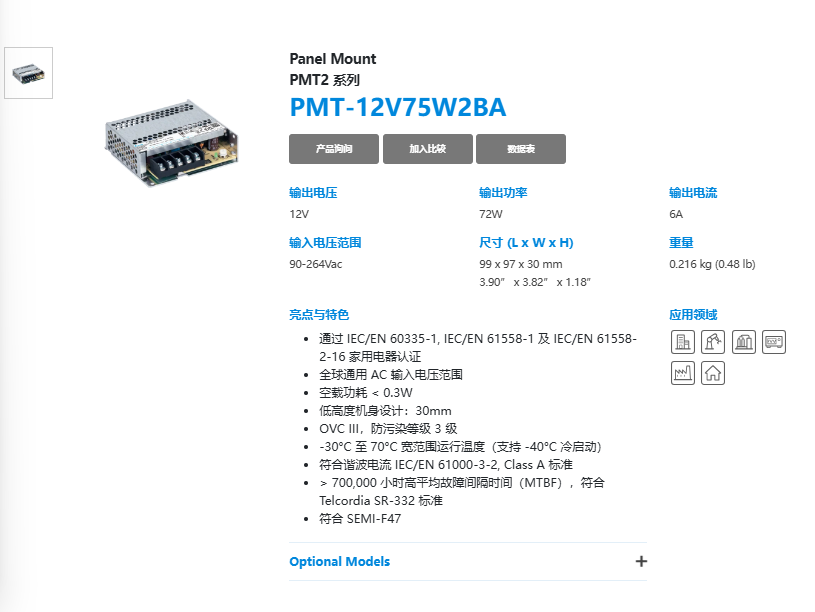 輸入電壓范圍 90-264 VAC 90-132 VAC, 180-264 VAC