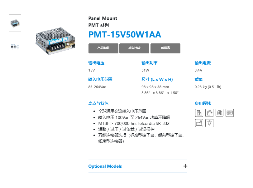 | 輸出 | PMT-15V35W2BA | PMT-15V50W2BA | PMT-15V75W2BA | PMT-15V100W2BA | PMT-15V150W2BA | PMT-15V150W2CA | |