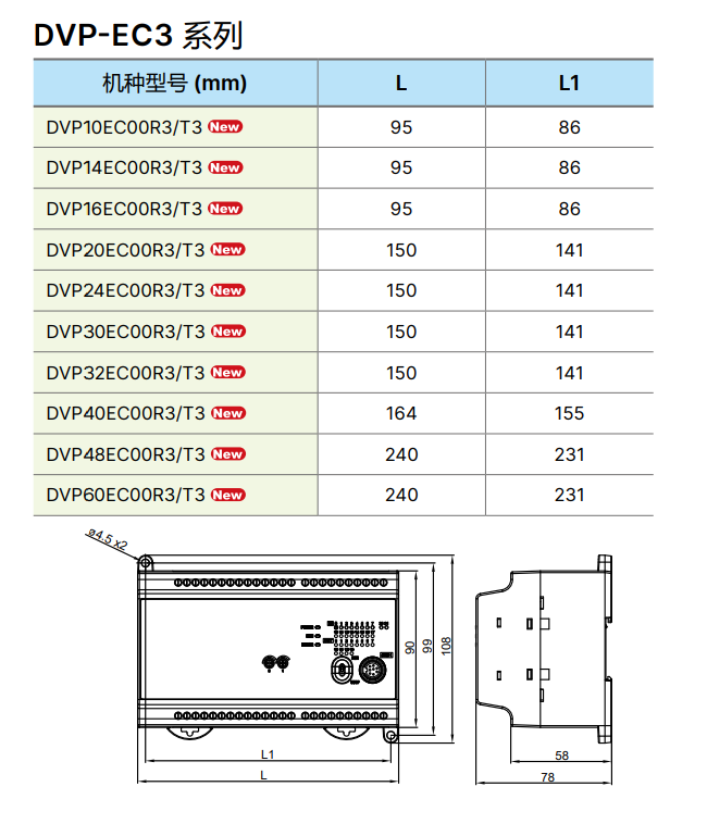 | DVP-EC3 系列主機 | |||||