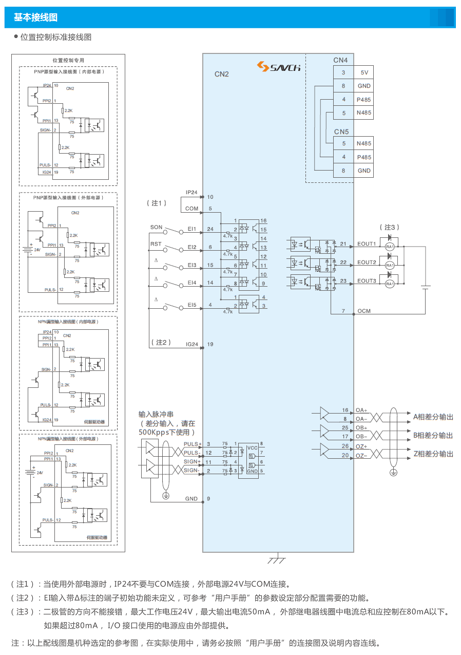 位置控制 大輸入脈沖頻率 差分輸入:大500kHz,開集電極輸入:大200kHz