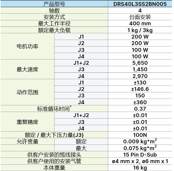 * 負載 1 kg 時,上下移動 25 mm,水平移動 300 mm,往返所需的時間。測試環境溫度 25oC, 環境相對濕度 45 ~ 65百分之 RH