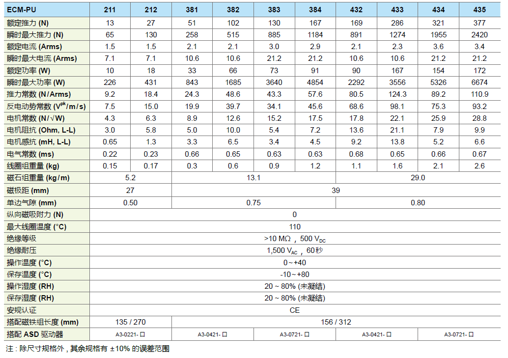 臺達軸式直線電機為無鐵芯架構,具散熱性佳、效率高、無頓動力、高動態響應、速度漣波小、無 磨耗、零背隙等特性。額定推力從 22 ~ 353 N,適合連續型軌跡運動,如電子零件與組裝、半 導體設備、光學檢測等應用。結構相似螺桿系統易于取代。